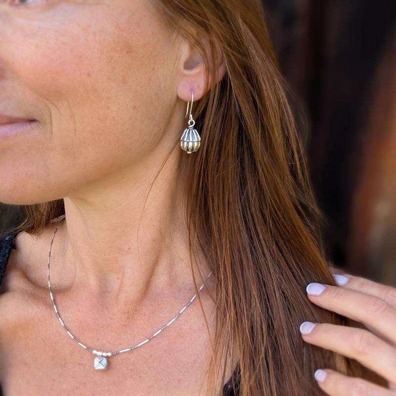 Les boucles d’oreilles argent Boutons de Fleur sont un modèle unique. Elles ont été entièrement fait à la main, par un artisan thaïlandais. Niché au cœur du triangle d’or, l’atelier de Lek sait offrir un travail de l’argent magnifique et délicat.
